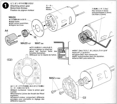 ピニオンギヤ、3mmイモネジ、モータープレート等