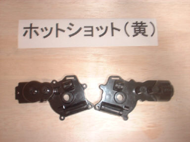 ![]() リヤギヤーケースは、ビス止めする部分が割れているものを外し、傷の少ないものを選定しました。 ホットショットⅡのものは、制作上は全く問題がないものの、一部 形状が違う部分があるので外しました。 |